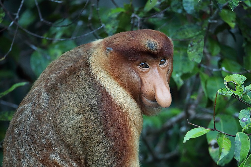 Vi cruiser oppover elva i vår klotok. Til å begynne med er det ikke så mye spennende som skjer, men plutselig dukker noen krabbemakaker opp. Og snart ser vi en ape med en stor nese oppe i et tre: Neseapen. Det er for godt til å være sant, at noen ser slik ut. Etter hvert kommer vi tydeligvis inne i neseapeland, for her er det neseaper i alle størrelser – også nesestørrelser.