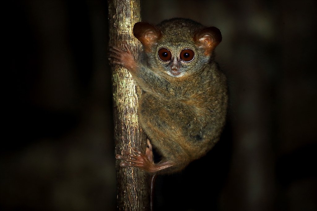 Like før mørkets frembrudd oppsøker vi et stort fikentre hvor det bor spøkelseseaper. De er nattaktive og kommer ut akkurat i det dagslyset svinner. Vi fotograferer disse med blits før de etter hvert forsvinner ut i regnskogen for å jakte insekter.