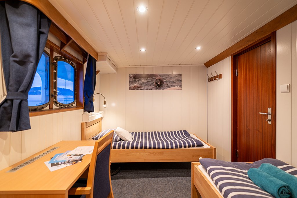 Med kun 12 deltakere om bord får du rikelig med plass, tid og ro til å fange de magiske, arktiske øyeblikkene på Svalbard. På denne tiden er det lyst døgnet rundt, og selv om båten er i fart vil det alltid være guider i førerhuset som speider etter spennende motiver.