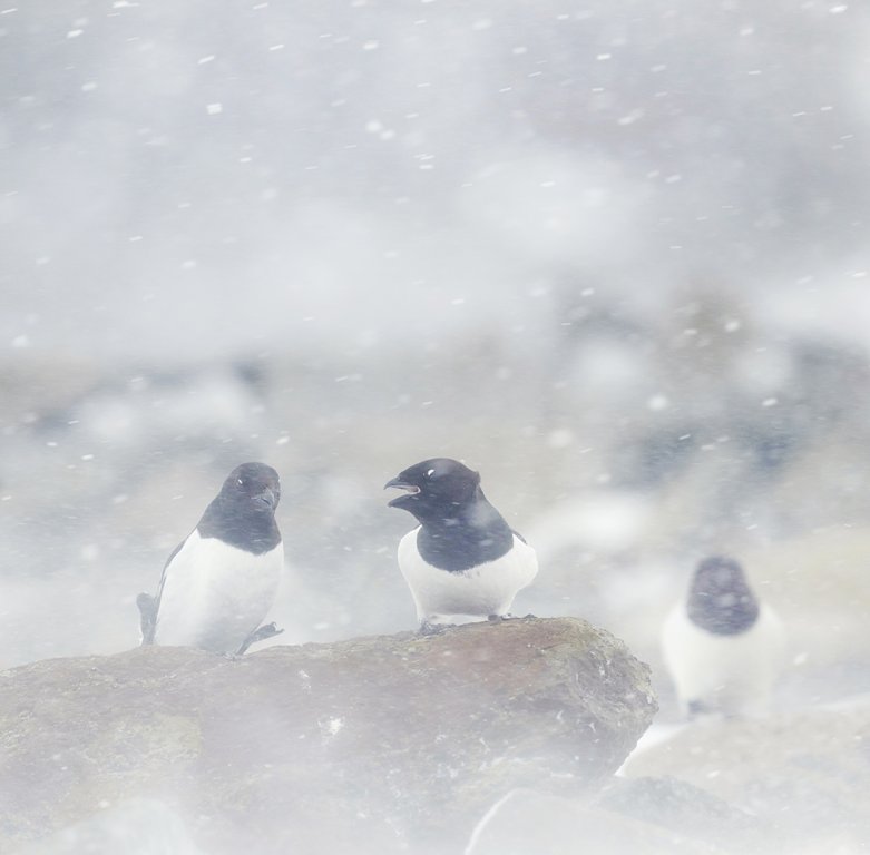 Den mest karakteristiske fuglefjellsfuglen på Svalbard utenom polarlomvien er den lille alkekongen som hekker i tusentall i steinurer, også rett ved Longyearbyen. De flyr sine runder om og om igjen – i tett flokk – ledsaget av en merkelig latter. Alkekongene er planktonspisere, og en alkekonge som har vært på ”plankton-fiske” avslører seg ved å ha ekstra stor strupe hvor godsakene er lagret. Under fuglefjellet har som regel en polarrev-familie tilhold. Der finner de mye mat gjennom sommeren.