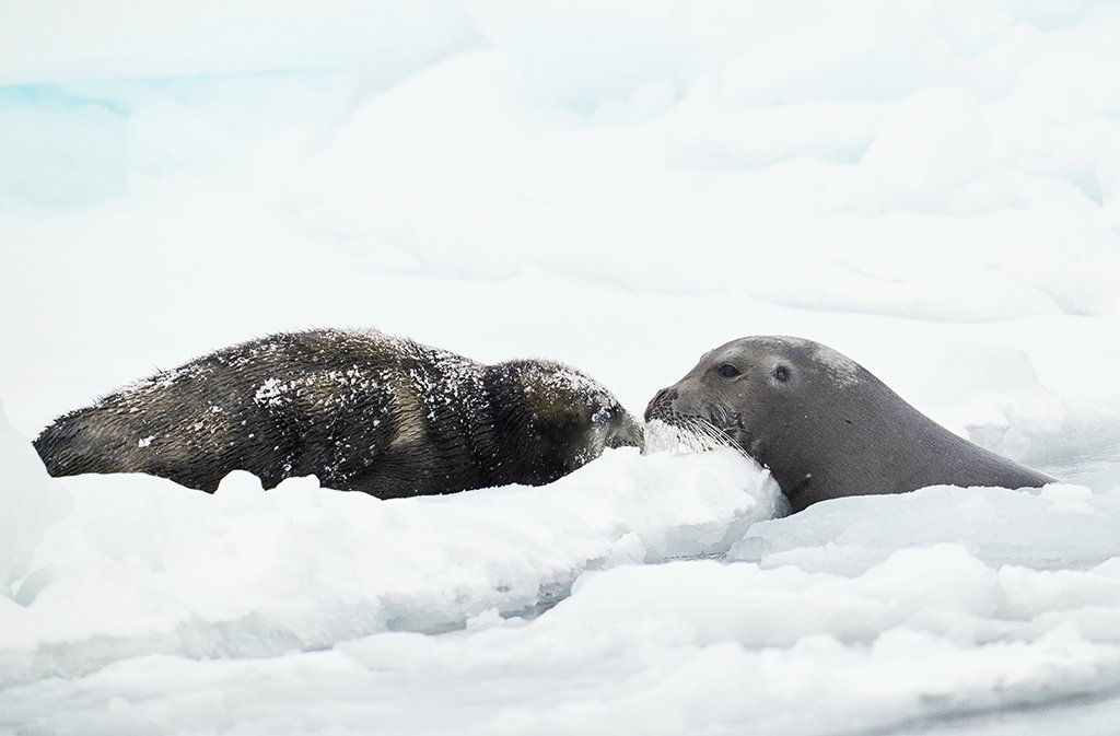 På Prins Karls Forland lever verdens nordligst steinkobber, og de er overhodet ikke redd for mennesker. Og dersom du begir deg ut i gummibåt inntil den store Kongsbreen i Kongsfjorden ved Ny Ålesund er det ikke umulig at du kan treffe på storkobbe med sine karakteristiske lange barter. Den er som hvalrossen, gir fullstendig blaffen i at det er folk i en gummibåt bare noen få meter unna. Først når gummibåten skubber inntil isflaket, velger den å gli ned i vannet.